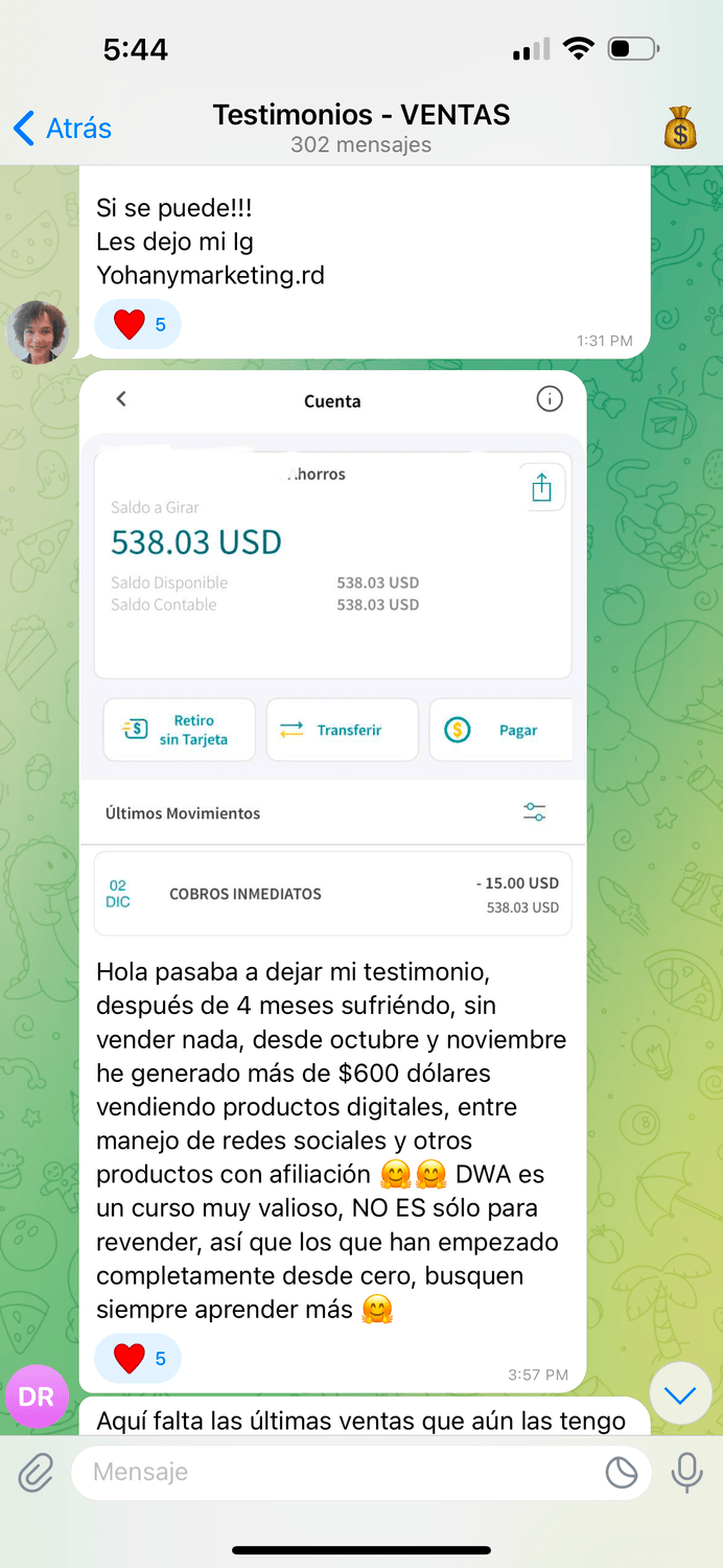 Hoy, ya van algunos meses viviendo de mi negocio digital lo cual me permite manejar mi tiempo, viajar, compartir en familia y hacer otras actividades mientras gano dinero en dólares y estoy convencida que tu también lo puedes LOGRAR.