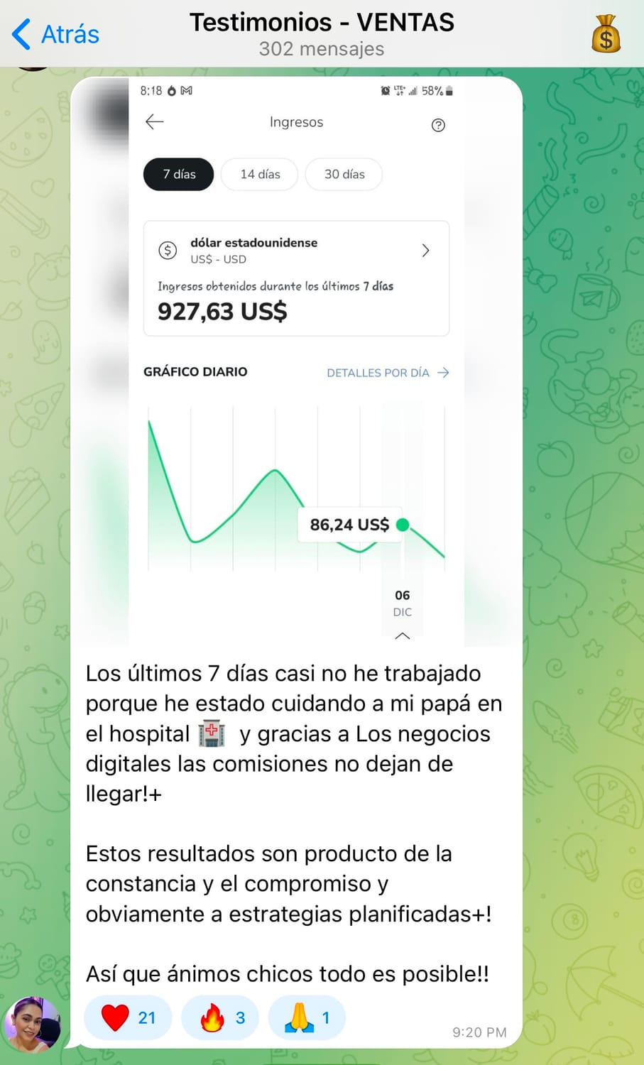 También tendrás acceso a mi grupo privado de Telegram donde tendrás mi asesoramiento y apoyo personal :)
